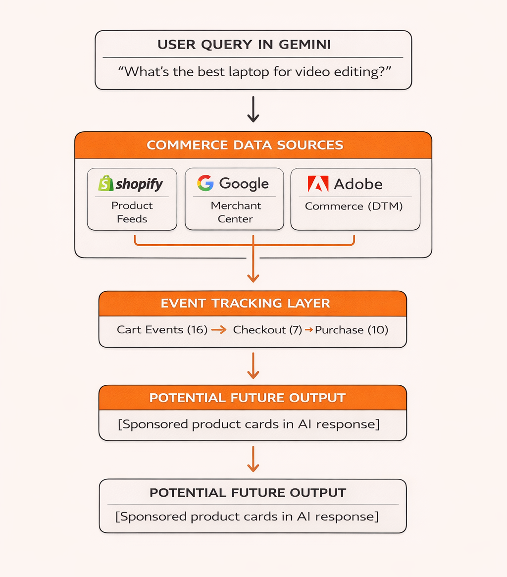 Audit your commerce readiness. Google's Shopify and Merchant Center integrations are already configured. If you sell products, ensure your feeds are optimized and your product data is structured for AI retrieval before sponsored placements go live.
