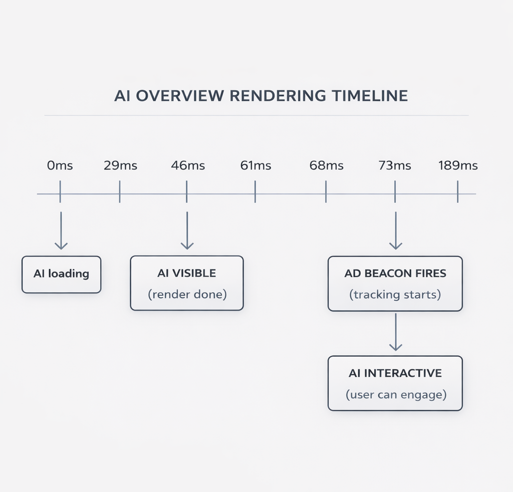 Here's something interesting from the timing data. Google prioritizes getting the AI Overview visible before ad tracking finishes: